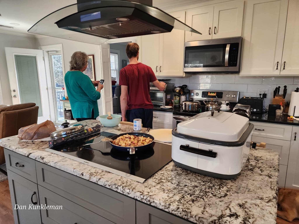My husband, Dan, and I learned about living the way our great-grandparents did, during Hurricane Hugo in 1989 and the nine days afterwards, when we had no power or water except rain runoff from the broken gutter that filled a baby pool. We were praying that this week’s ice storm would not cripple the folks in its path. Weather people gave us ample warning to prepare for this storm, a luxury we didn’t have when Hugo made a crazy path far inland to the piedmont. The motto I adore is “Don’t be scared, be prepared.” I heard our favorite weatherman, Brad, use those wise words. And so, we prepared.